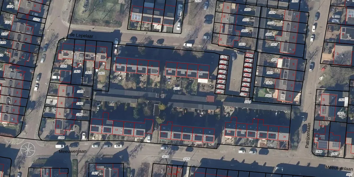 Gebruik de zoekbalk of klik op een perceel om informatie over het perceel te bekijken.