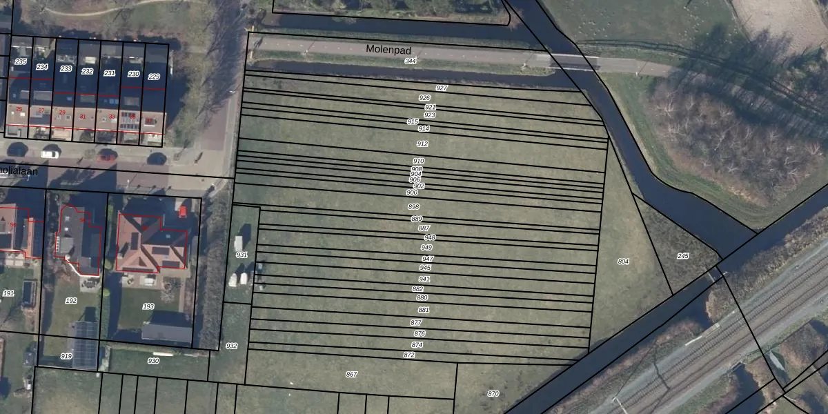 Gebruik de zoekbalk of klik op een perceel om informatie over het perceel te bekijken.