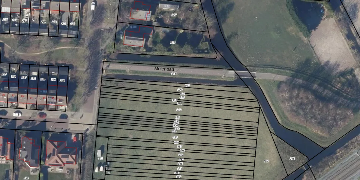 Gebruik de zoekbalk of klik op een perceel om informatie over het perceel te bekijken.