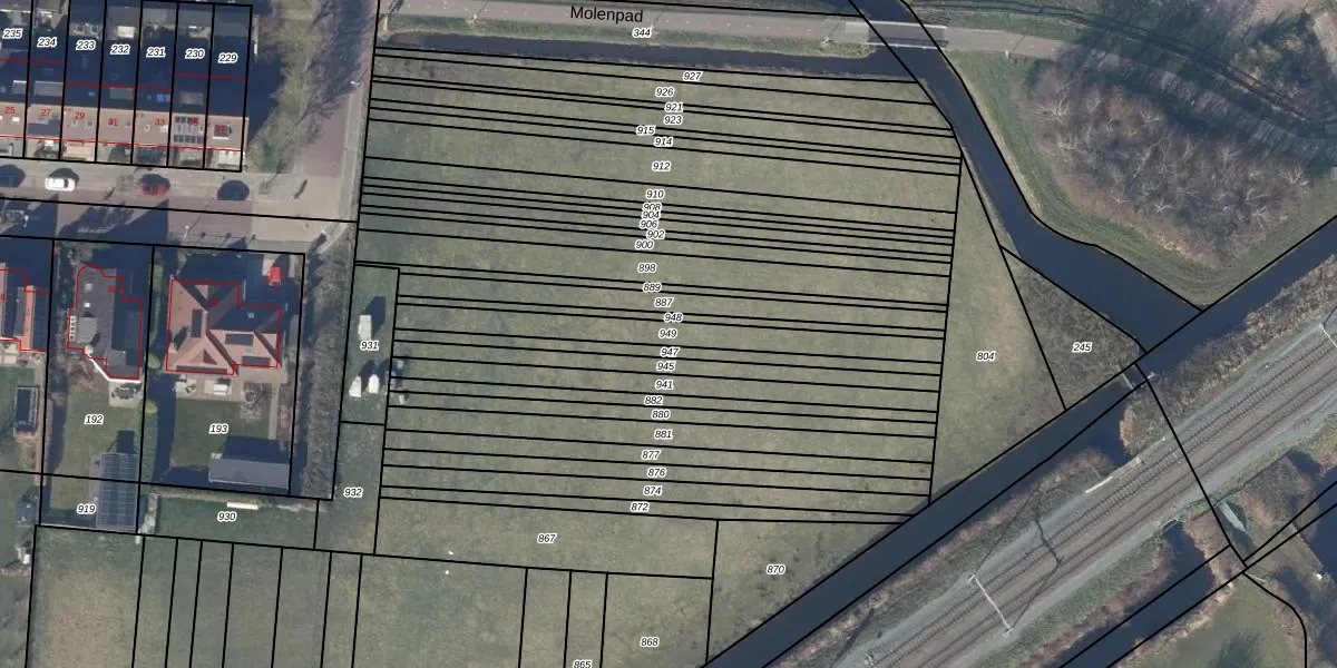 Gebruik de zoekbalk of klik op een perceel om informatie over het perceel te bekijken.