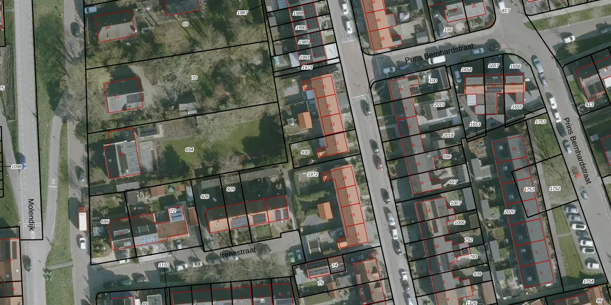 Gebruik de zoekbalk of klik op een perceel om informatie over het perceel te bekijken.