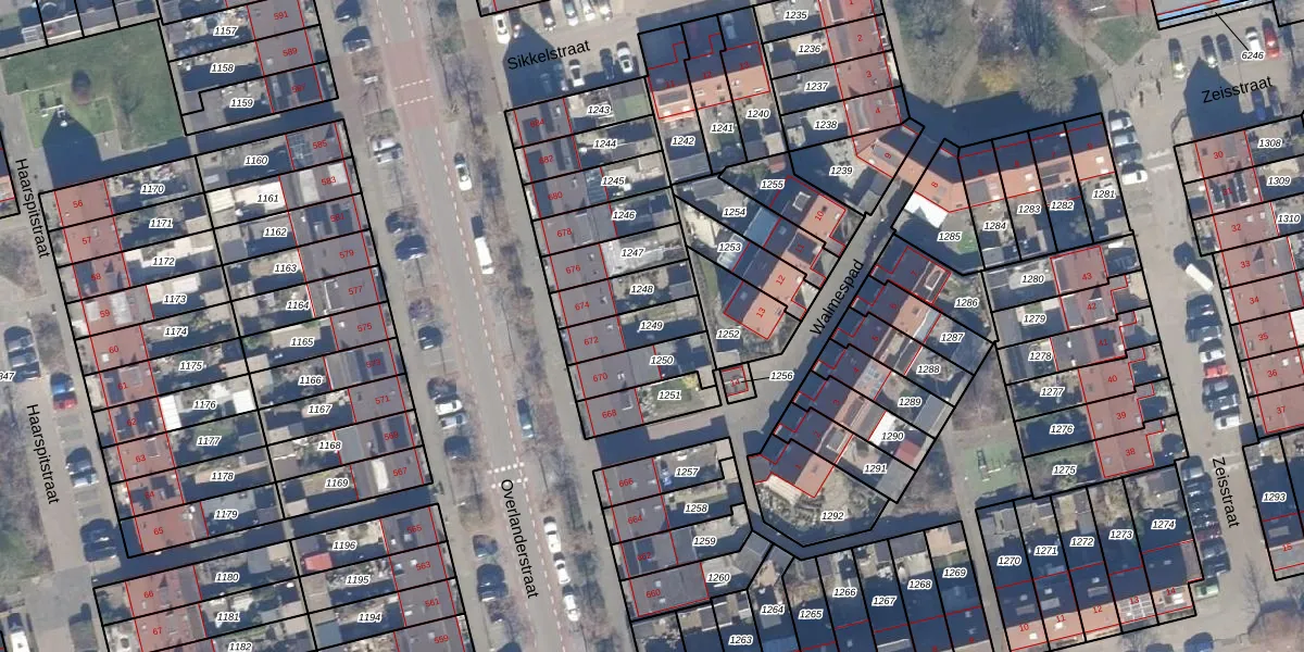 Gebruik de zoekbalk of klik op een perceel om informatie over het perceel te bekijken.