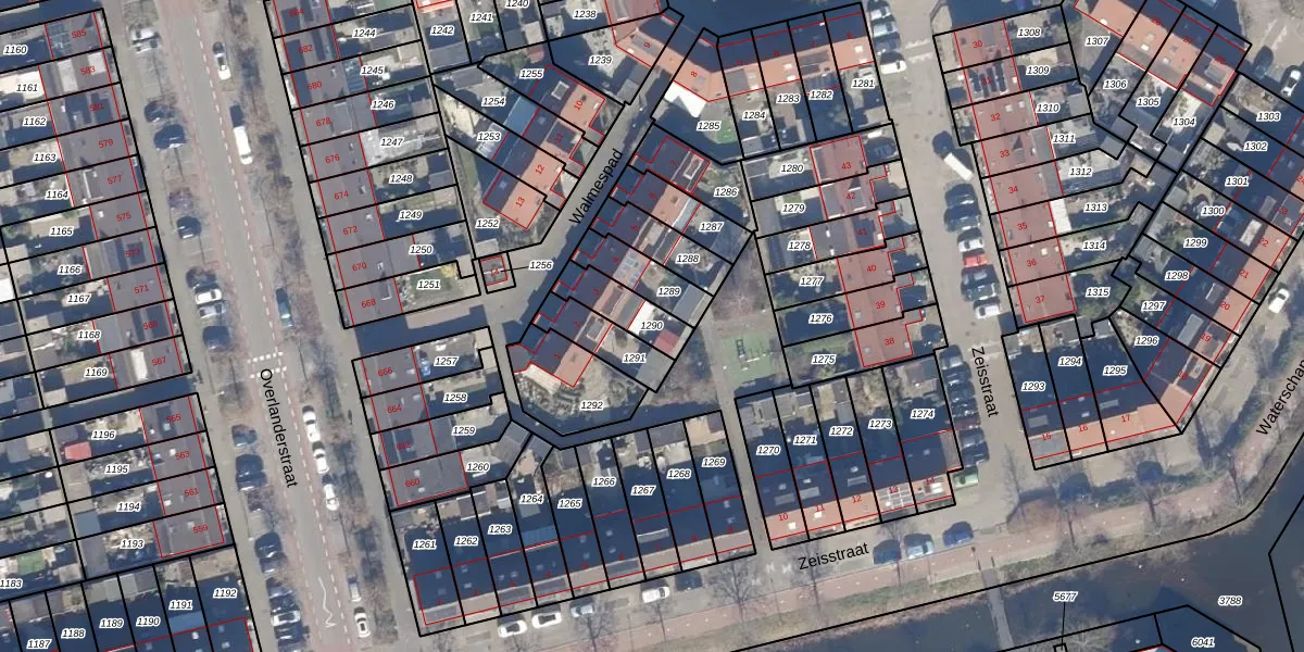 Gebruik de zoekbalk of klik op een perceel om informatie over het perceel te bekijken.