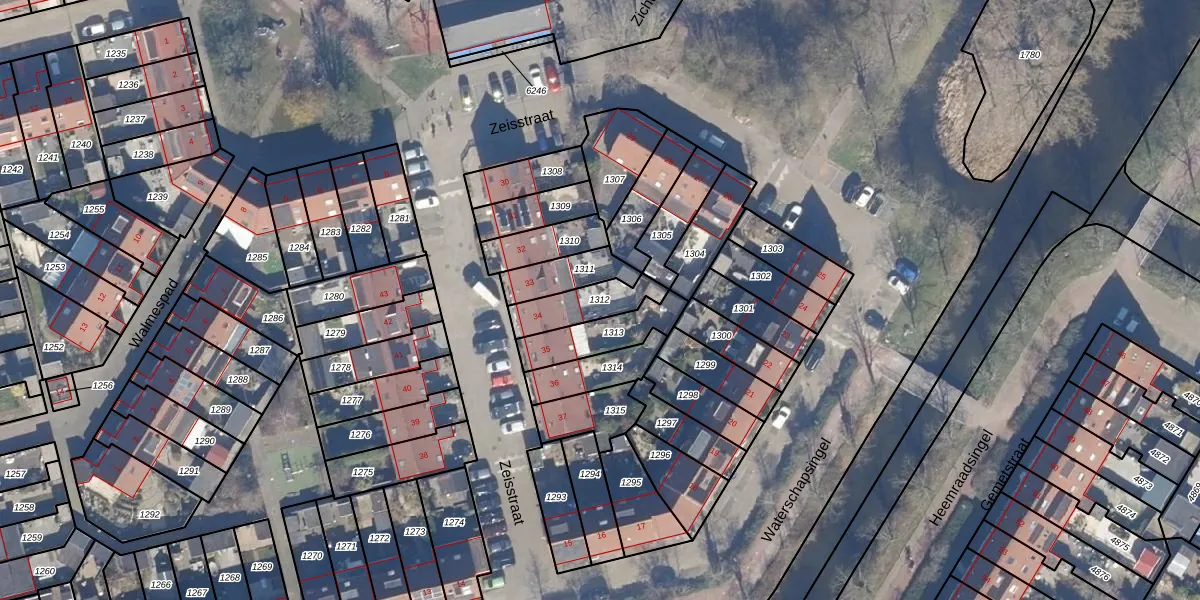 Gebruik de zoekbalk of klik op een perceel om informatie over het perceel te bekijken.