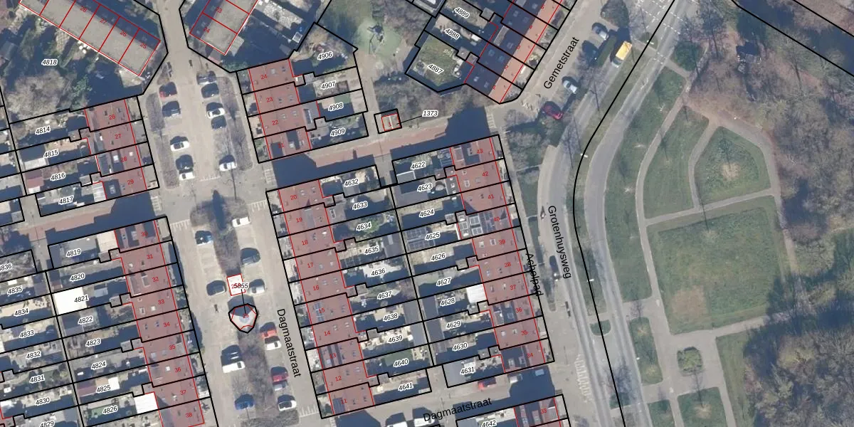 Gebruik de zoekbalk of klik op een perceel om informatie over het perceel te bekijken.