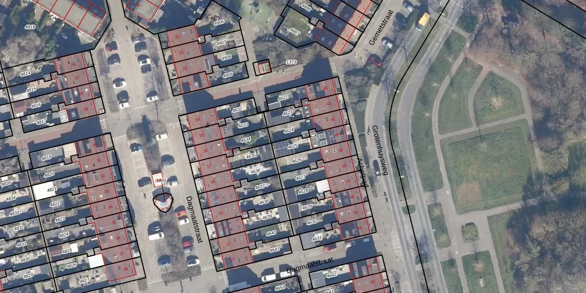 Gebruik de zoekbalk of klik op een perceel om informatie over het perceel te bekijken.
