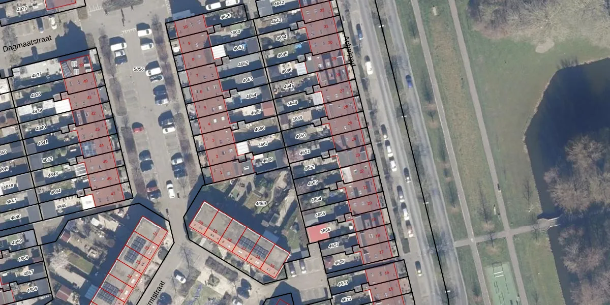 Gebruik de zoekbalk of klik op een perceel om informatie over het perceel te bekijken.