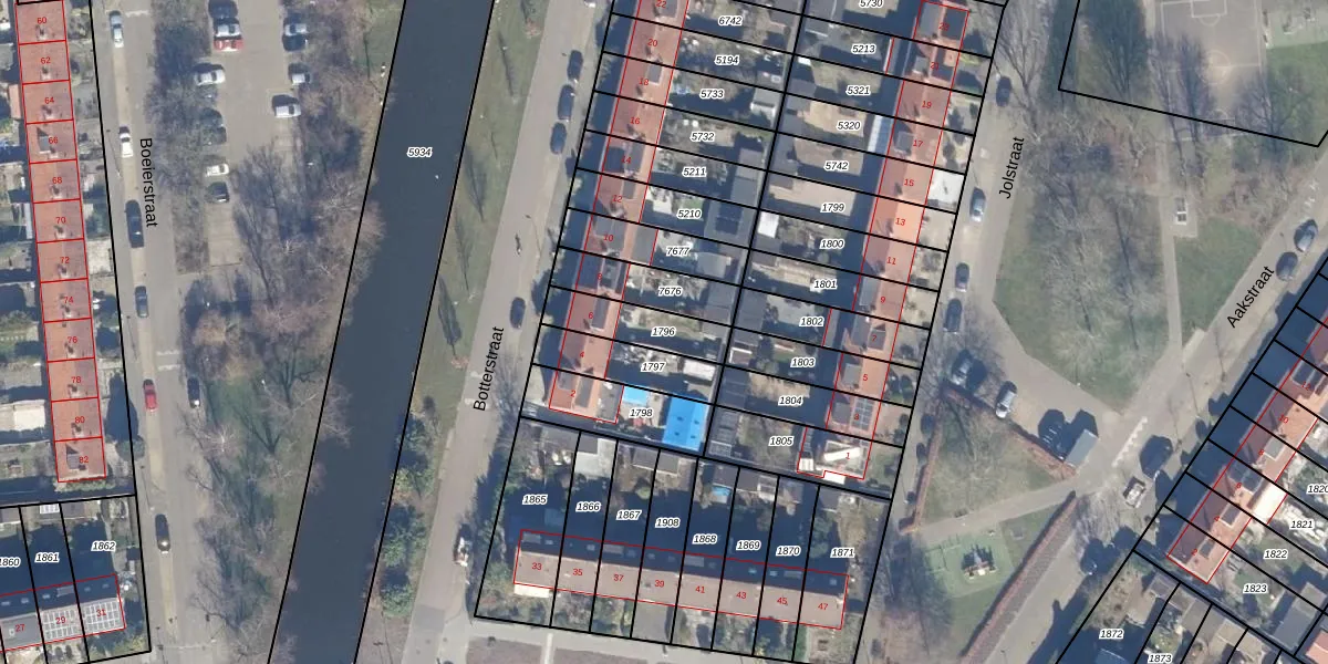 Gebruik de zoekbalk of klik op een perceel om informatie over het perceel te bekijken.