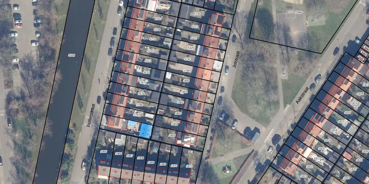 Gebruik de zoekbalk of klik op een perceel om informatie over het perceel te bekijken.