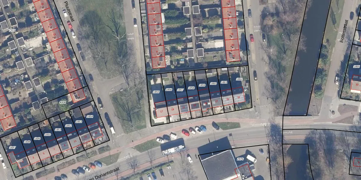Gebruik de zoekbalk of klik op een perceel om informatie over het perceel te bekijken.