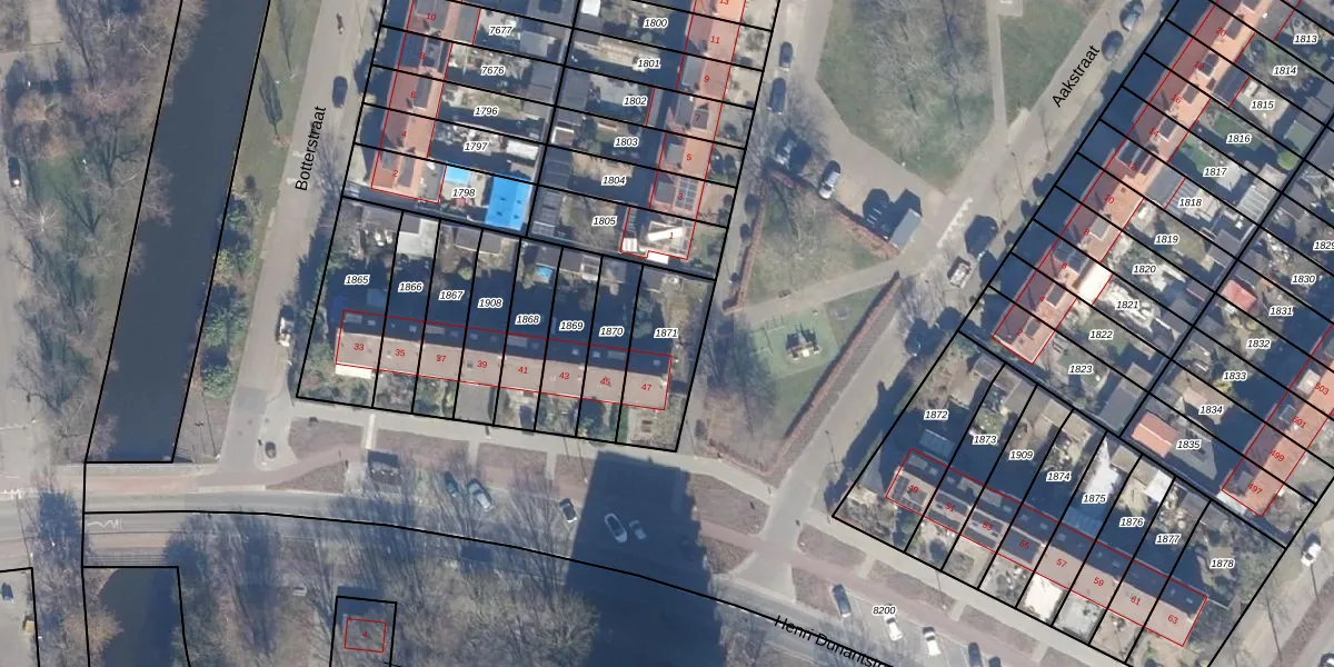 Gebruik de zoekbalk of klik op een perceel om informatie over het perceel te bekijken.