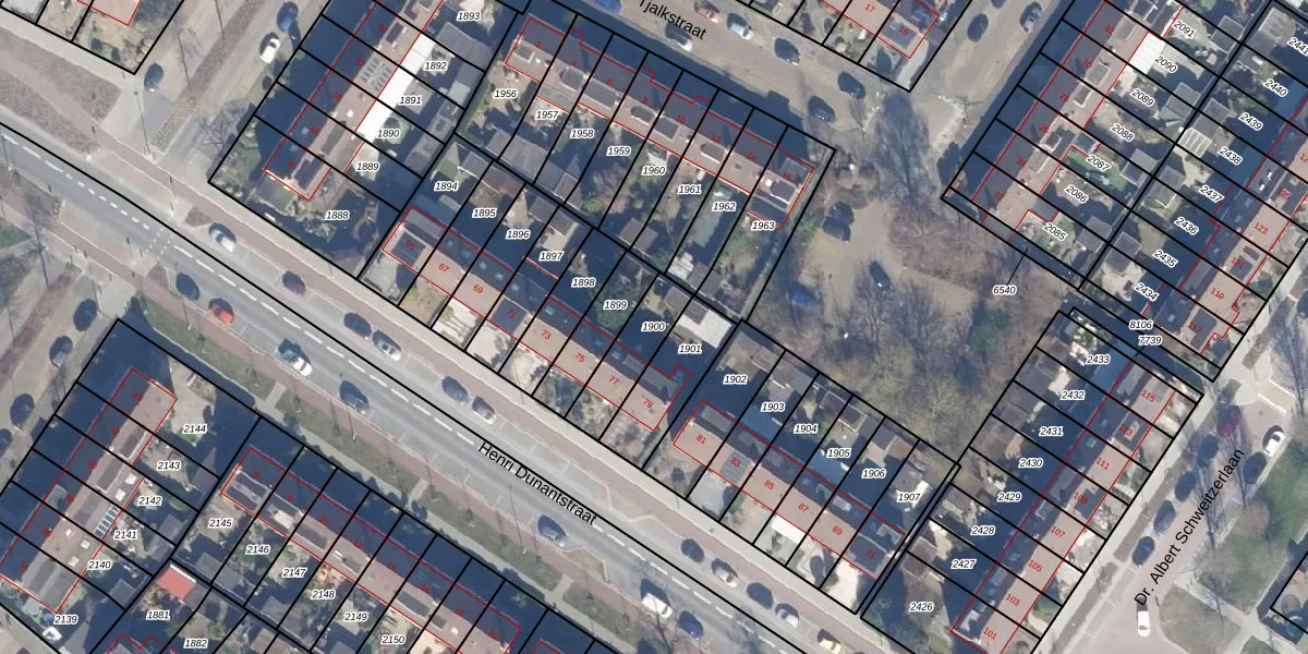 Gebruik de zoekbalk of klik op een perceel om informatie over het perceel te bekijken.