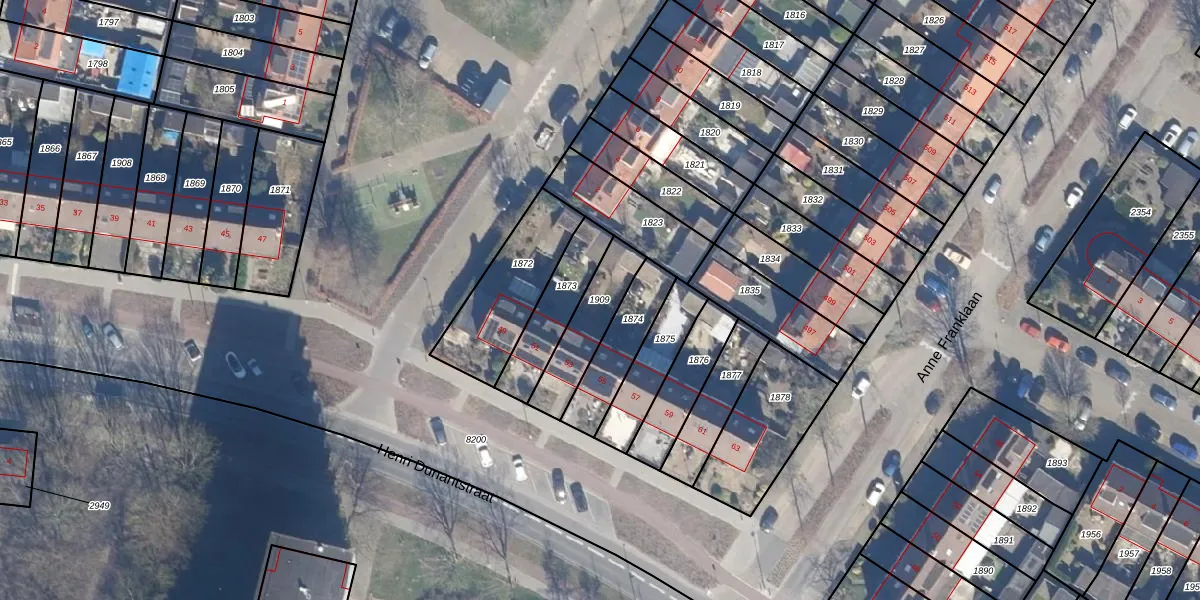 Gebruik de zoekbalk of klik op een perceel om informatie over het perceel te bekijken.