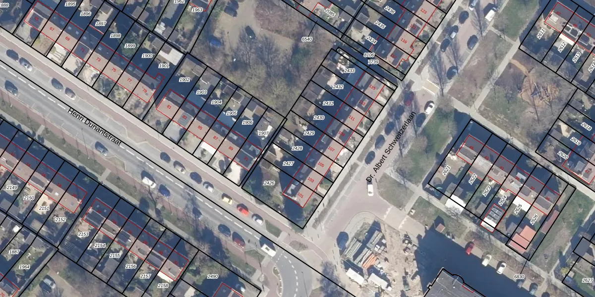 Gebruik de zoekbalk of klik op een perceel om informatie over het perceel te bekijken.