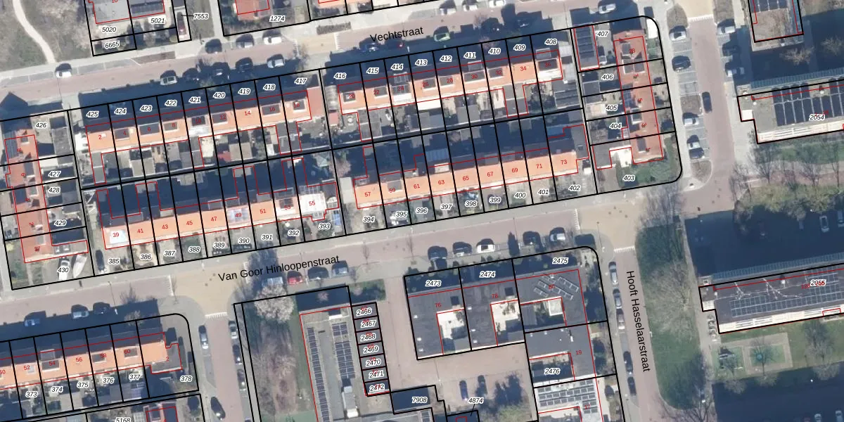 Gebruik de zoekbalk of klik op een perceel om informatie over het perceel te bekijken.