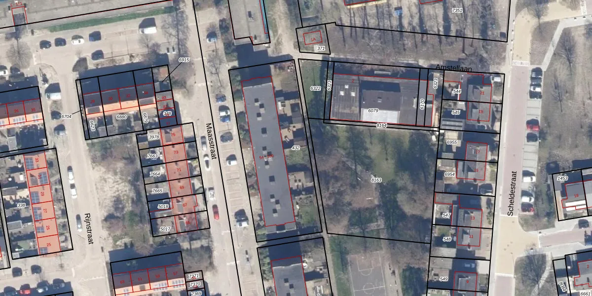 Gebruik de zoekbalk of klik op een perceel om informatie over het perceel te bekijken.