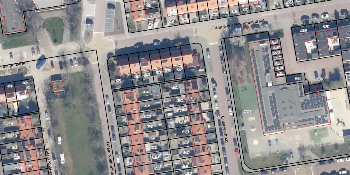 Gebruik de zoekbalk of klik op een perceel om informatie over het perceel te bekijken.