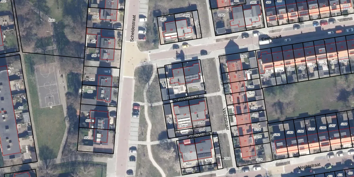 Gebruik de zoekbalk of klik op een perceel om informatie over het perceel te bekijken.