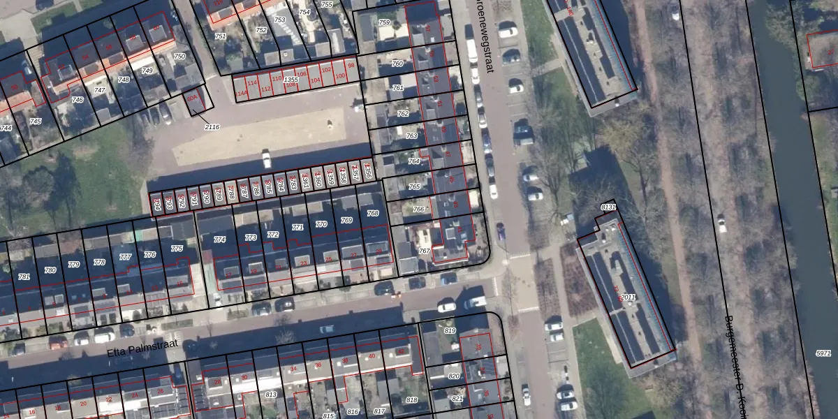 Gebruik de zoekbalk of klik op een perceel om informatie over het perceel te bekijken.