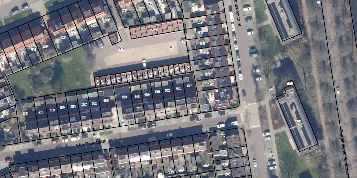 Gebruik de zoekbalk of klik op een perceel om informatie over het perceel te bekijken.