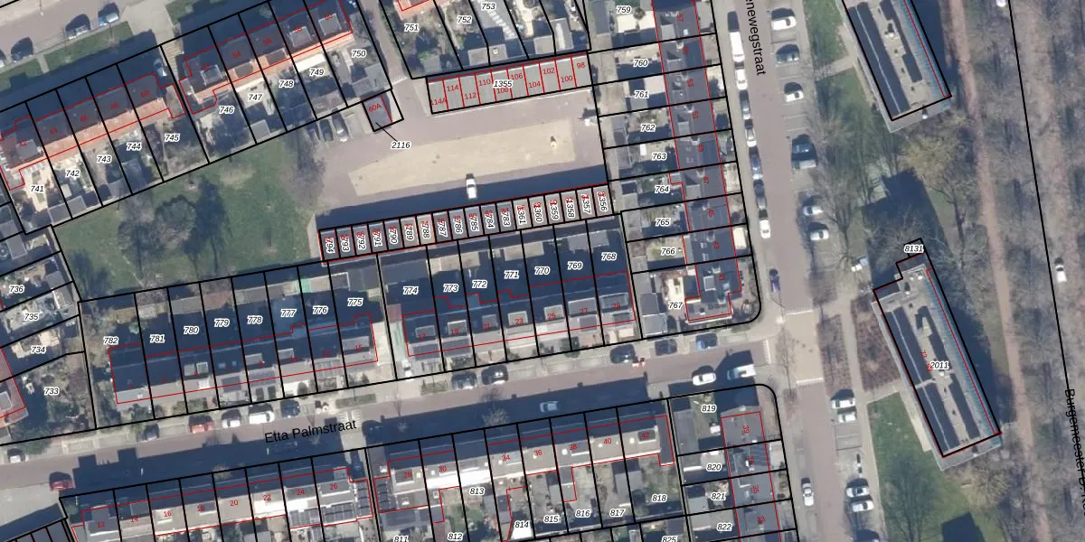 Gebruik de zoekbalk of klik op een perceel om informatie over het perceel te bekijken.