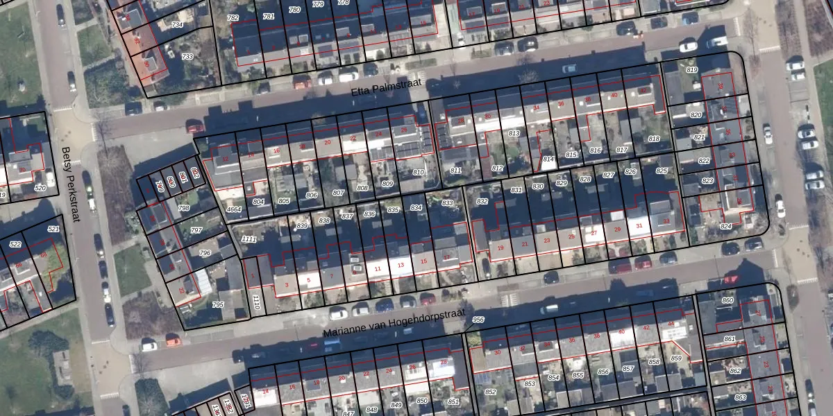Gebruik de zoekbalk of klik op een perceel om informatie over het perceel te bekijken.