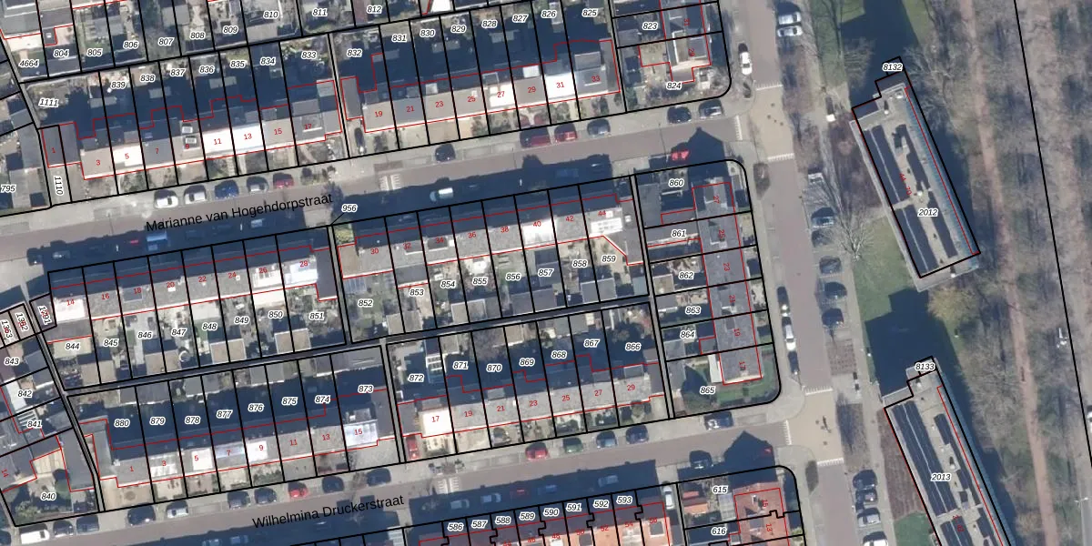 Gebruik de zoekbalk of klik op een perceel om informatie over het perceel te bekijken.