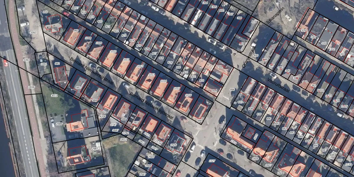Gebruik de zoekbalk of klik op een perceel om informatie over het perceel te bekijken.
