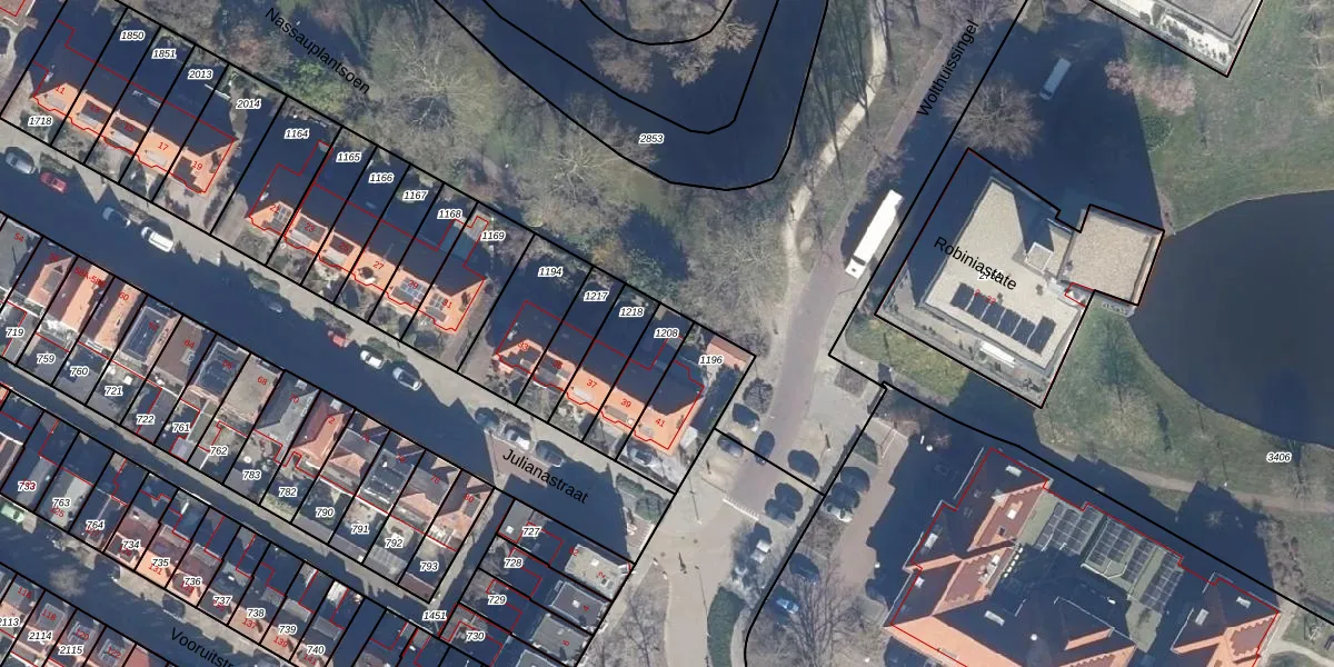 Gebruik de zoekbalk of klik op een perceel om informatie over het perceel te bekijken.