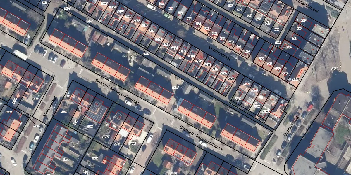 Gebruik de zoekbalk of klik op een perceel om informatie over het perceel te bekijken.