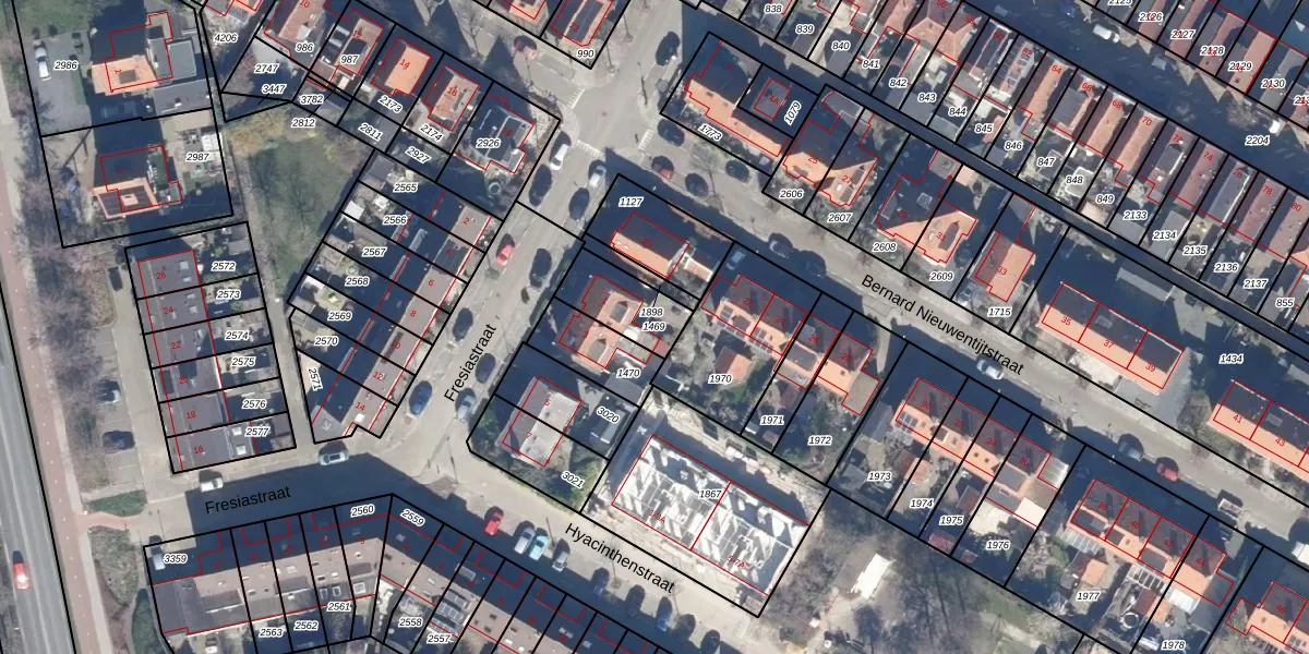 Gebruik de zoekbalk of klik op een perceel om informatie over het perceel te bekijken.