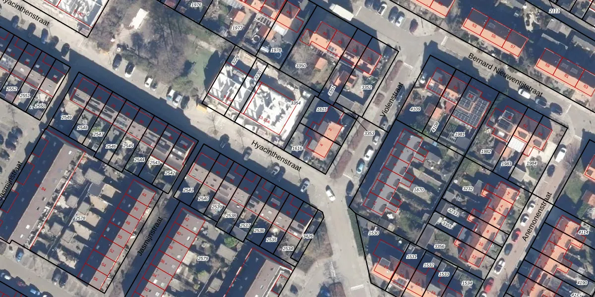 Gebruik de zoekbalk of klik op een perceel om informatie over het perceel te bekijken.