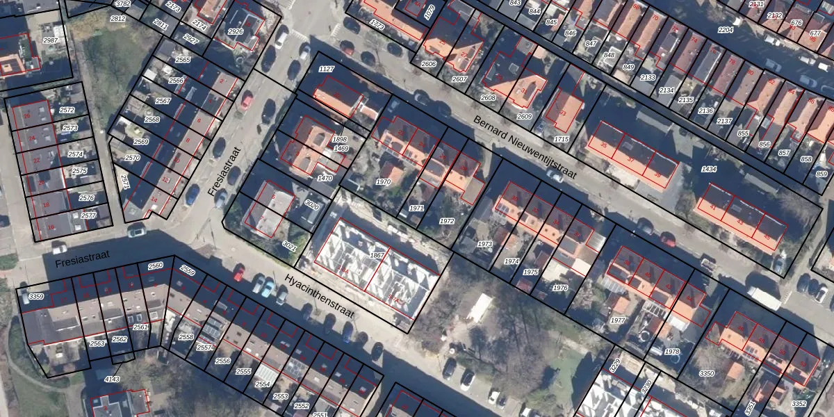 Gebruik de zoekbalk of klik op een perceel om informatie over het perceel te bekijken.