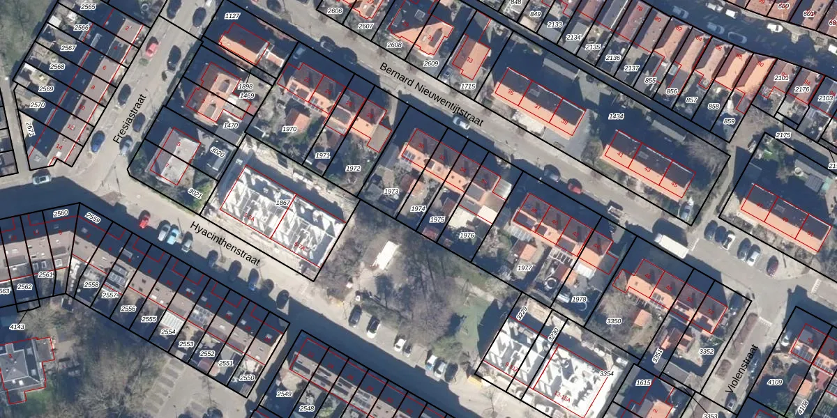 Gebruik de zoekbalk of klik op een perceel om informatie over het perceel te bekijken.