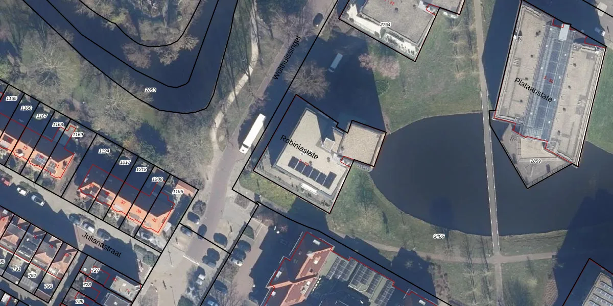Gebruik de zoekbalk of klik op een perceel om informatie over het perceel te bekijken.