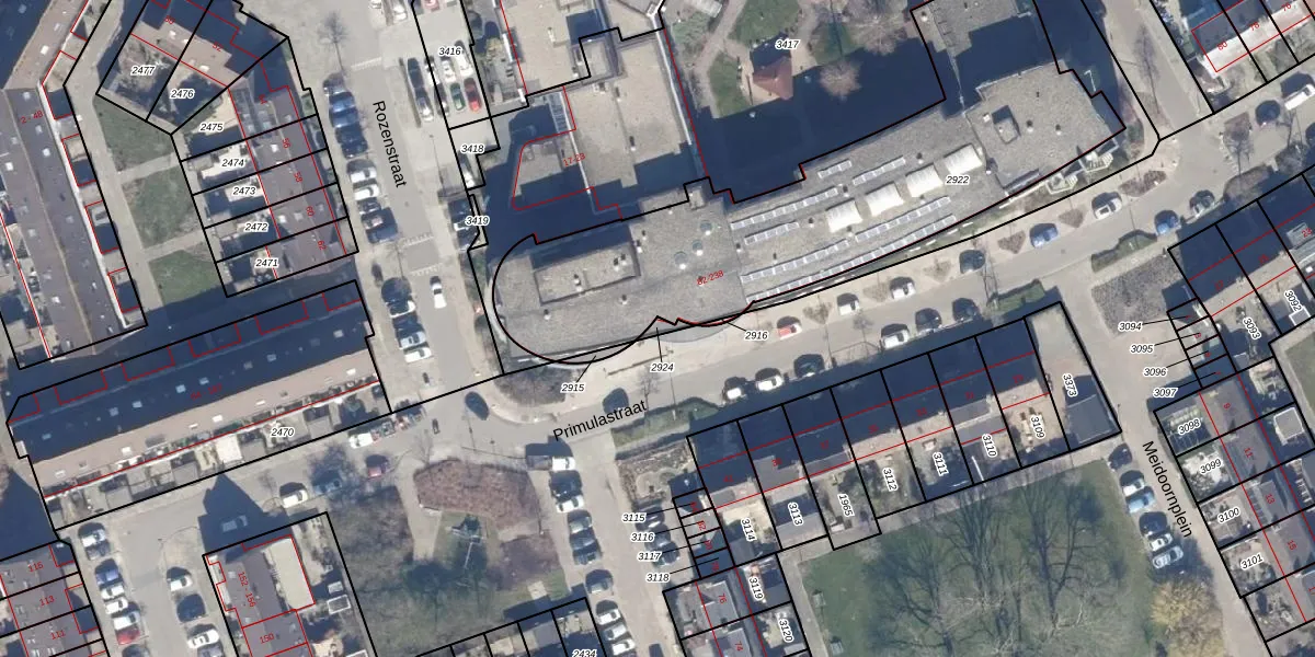 Gebruik de zoekbalk of klik op een perceel om informatie over het perceel te bekijken.