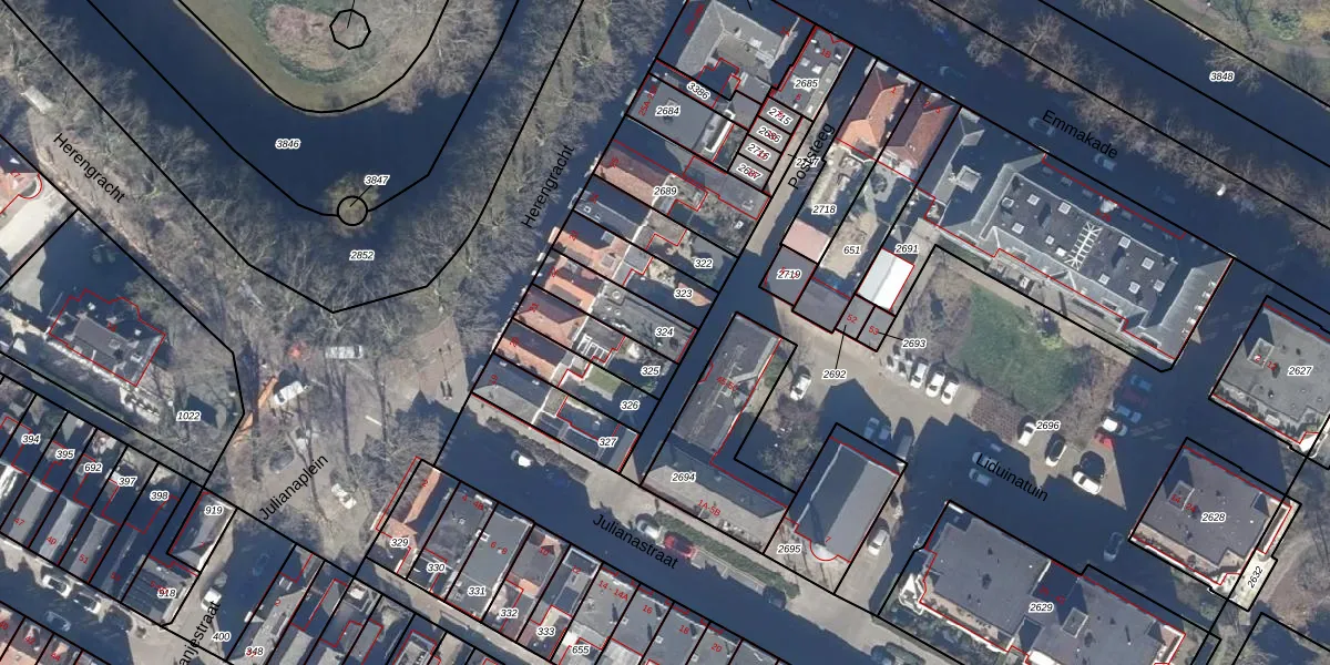 Gebruik de zoekbalk of klik op een perceel om informatie over het perceel te bekijken.