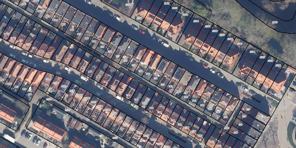 Gebruik de zoekbalk of klik op een perceel om informatie over het perceel te bekijken.