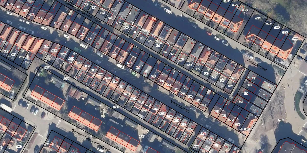 Gebruik de zoekbalk of klik op een perceel om informatie over het perceel te bekijken.