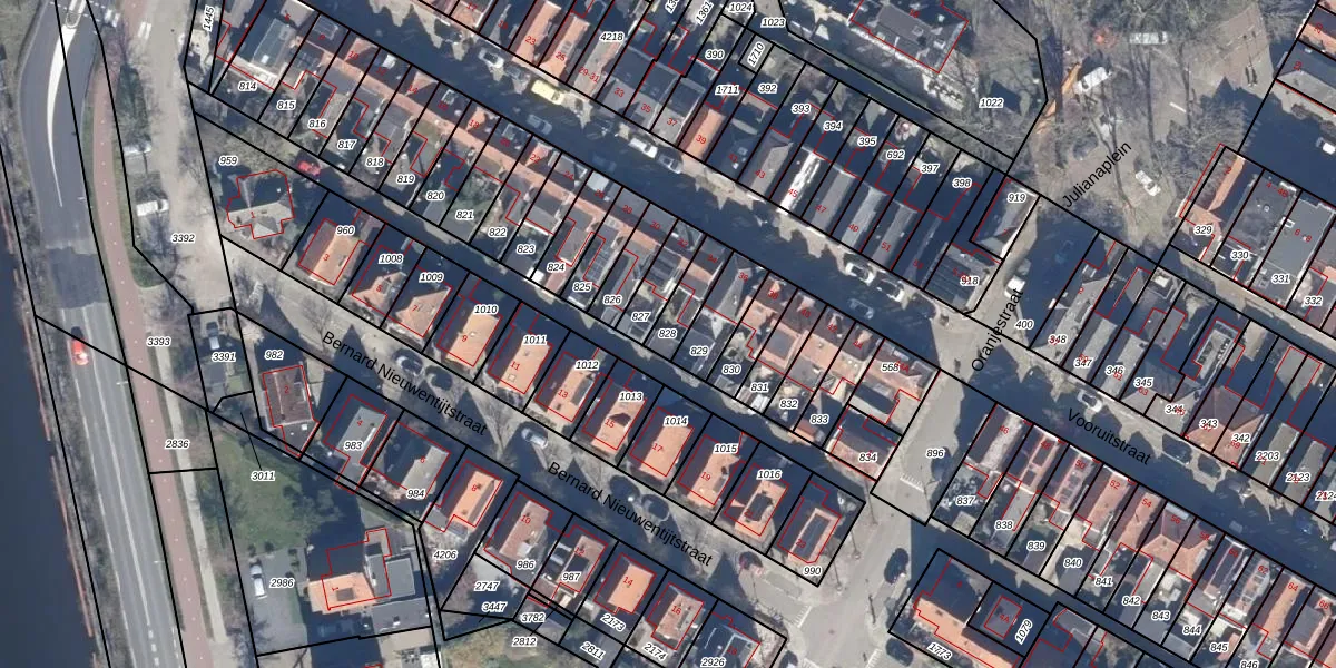Gebruik de zoekbalk of klik op een perceel om informatie over het perceel te bekijken.