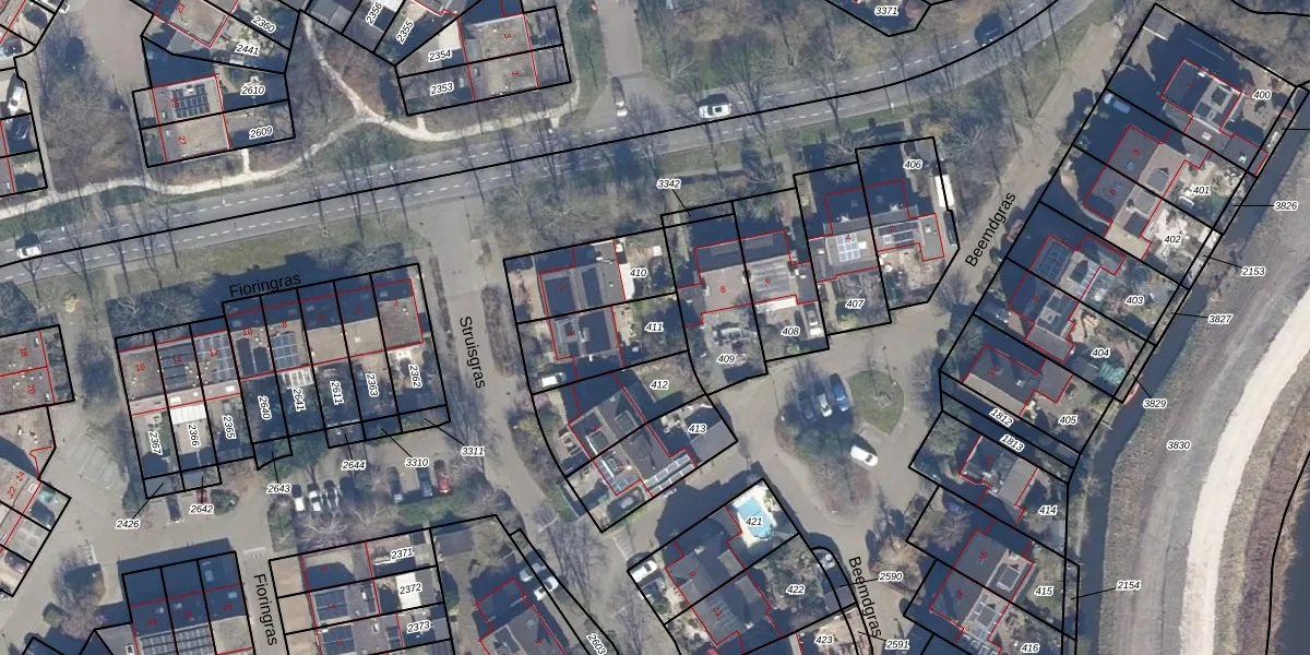 Gebruik de zoekbalk of klik op een perceel om informatie over het perceel te bekijken.