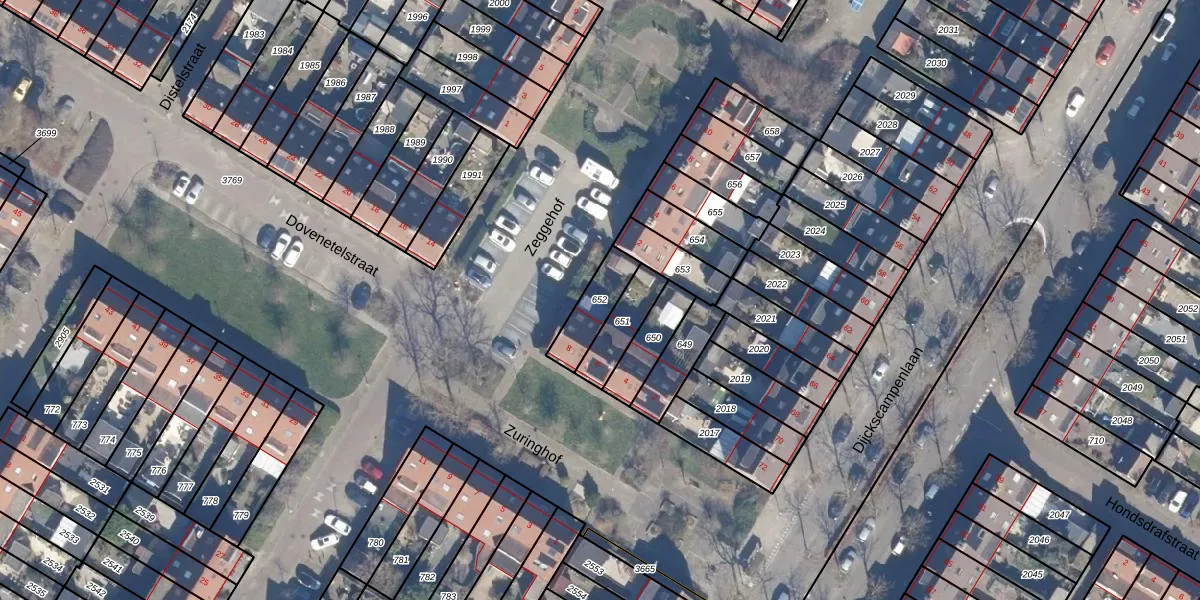 Gebruik de zoekbalk of klik op een perceel om informatie over het perceel te bekijken.