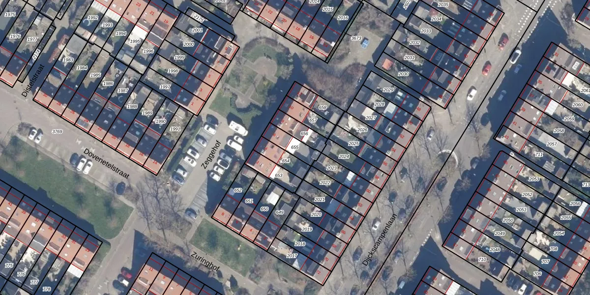 Gebruik de zoekbalk of klik op een perceel om informatie over het perceel te bekijken.