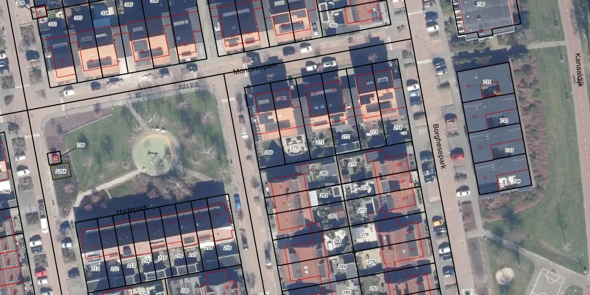 Gebruik de zoekbalk of klik op een perceel om informatie over het perceel te bekijken.