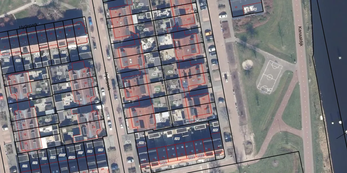 Gebruik de zoekbalk of klik op een perceel om informatie over het perceel te bekijken.