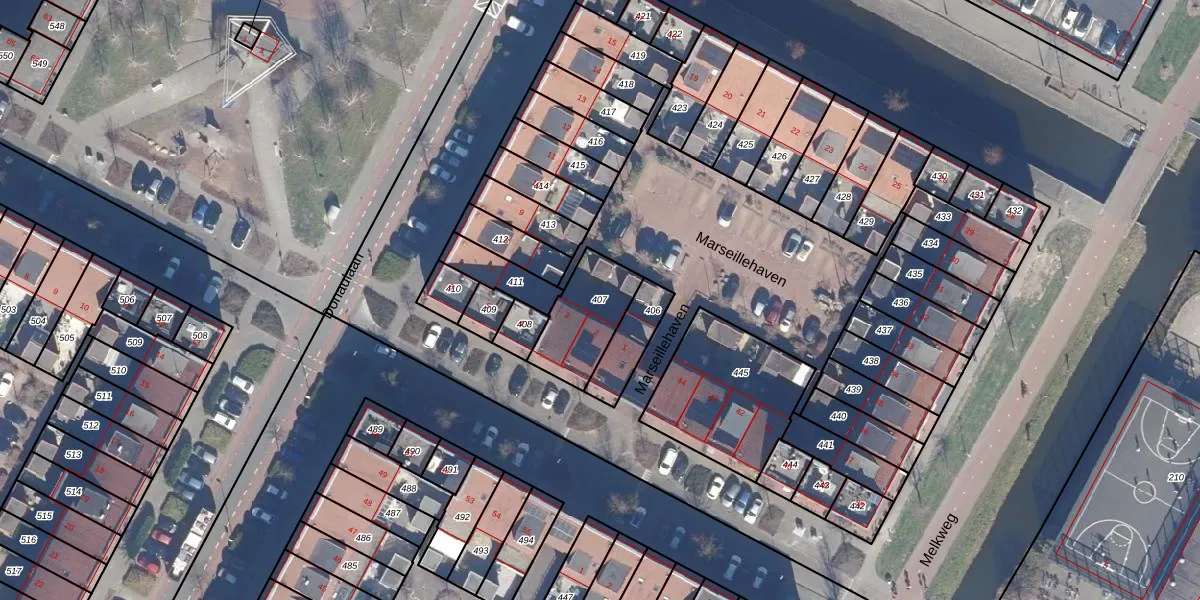 Gebruik de zoekbalk of klik op een perceel om informatie over het perceel te bekijken.