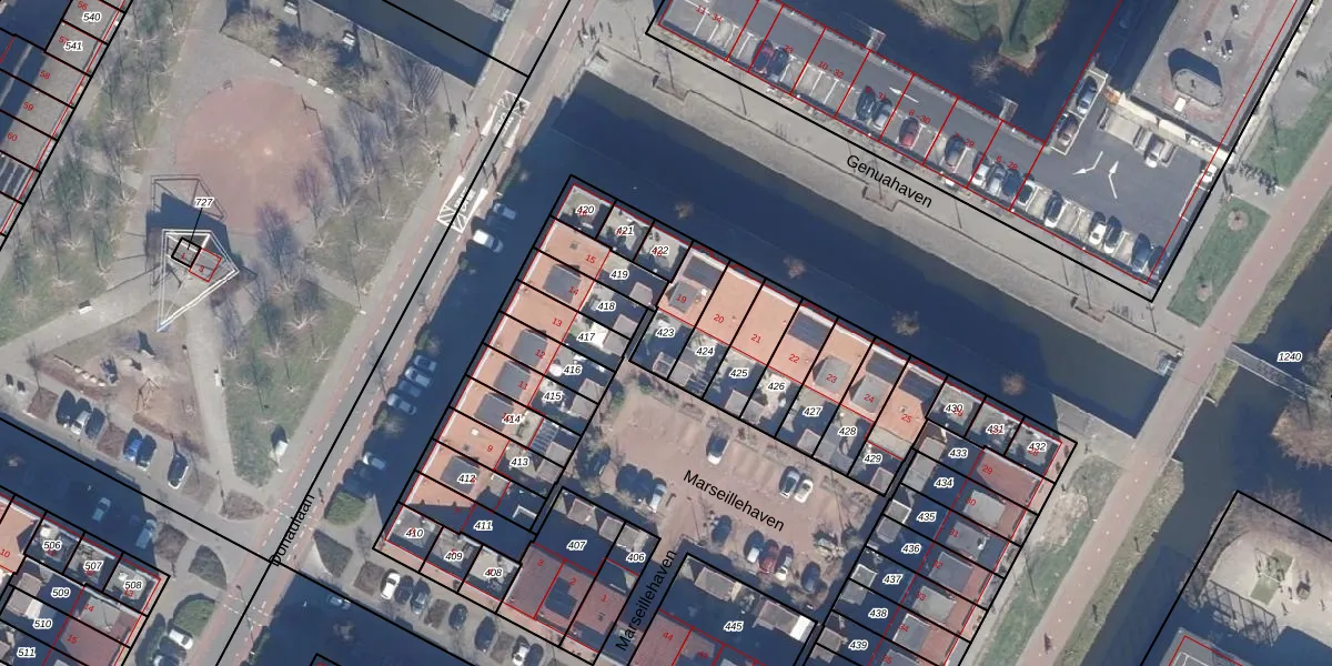 Gebruik de zoekbalk of klik op een perceel om informatie over het perceel te bekijken.