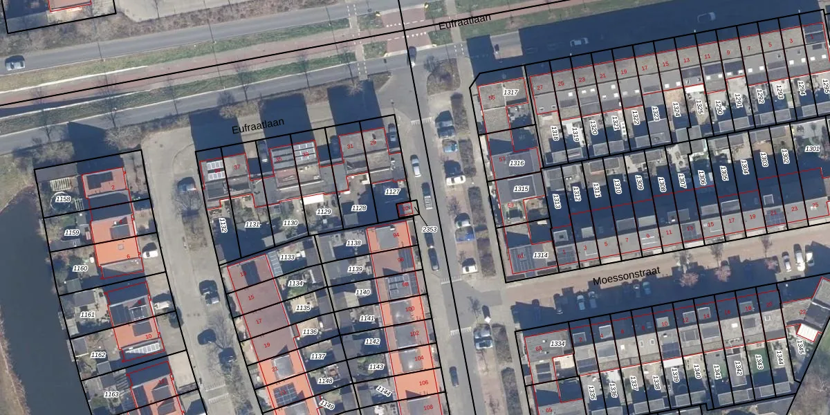 Gebruik de zoekbalk of klik op een perceel om informatie over het perceel te bekijken.
