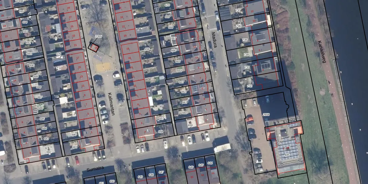 Gebruik de zoekbalk of klik op een perceel om informatie over het perceel te bekijken.
