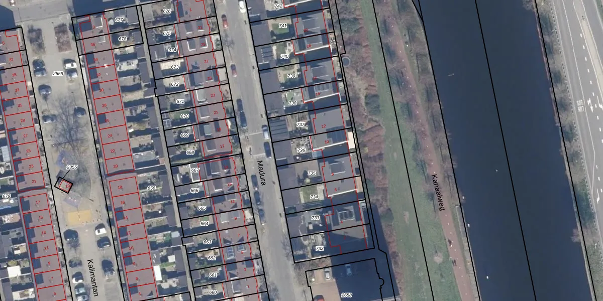 Gebruik de zoekbalk of klik op een perceel om informatie over het perceel te bekijken.